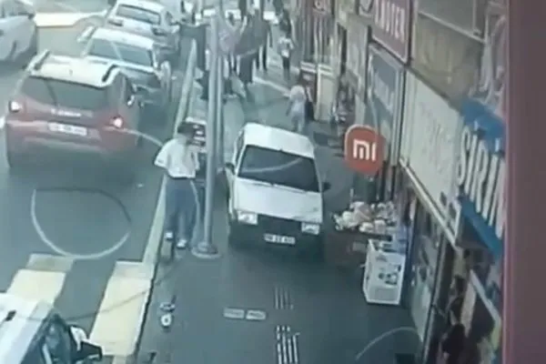 Karşıdan araç gelmesi üzerine yoluna devam edemeyen sürücü, geri manevra yaparak Atatürk Bulvarı’na çıktı. Ardından kaldırıma çıkarak hem araç trafiğini hem de yayaların güvenliğini hiçe saydı.